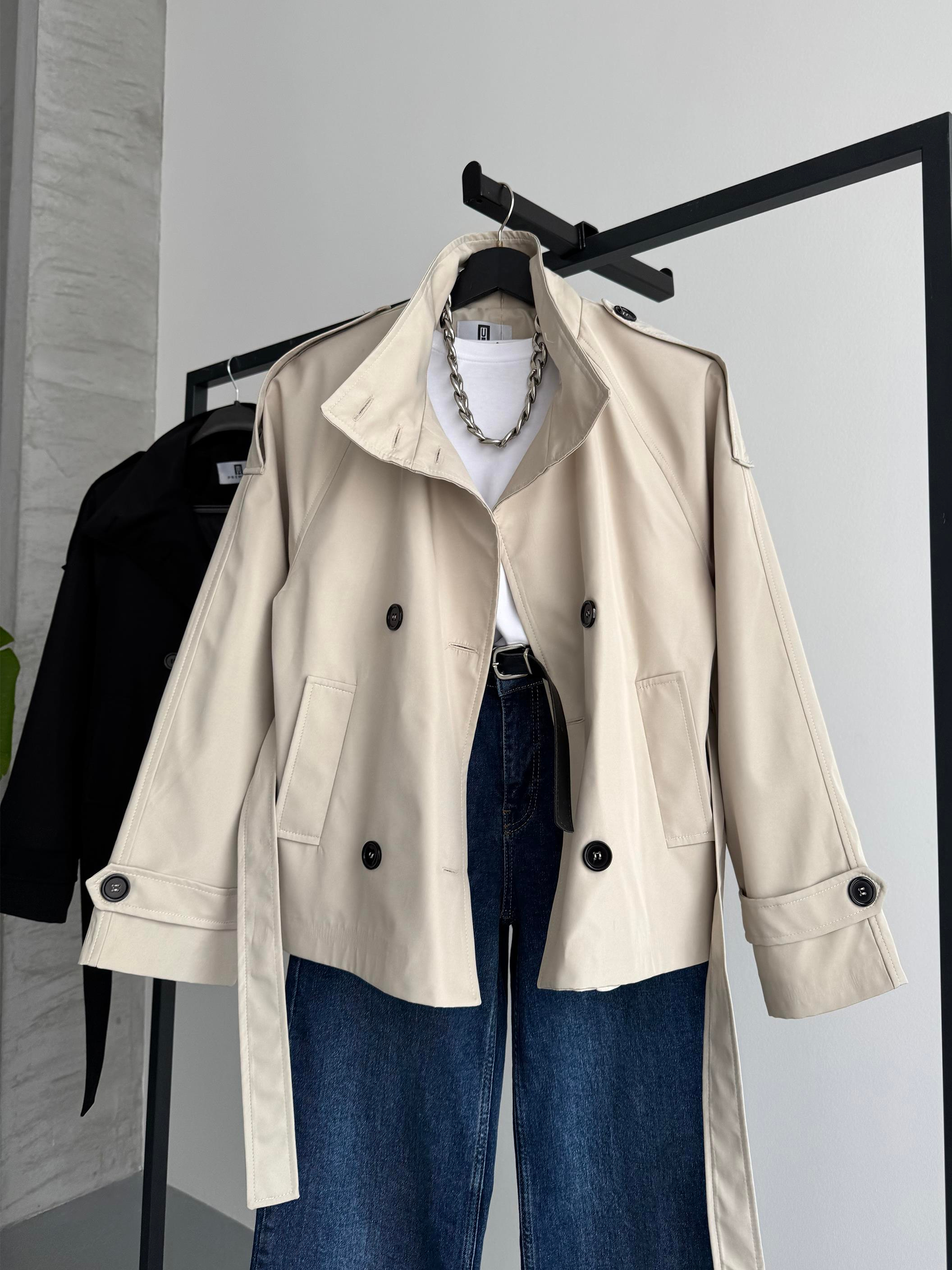 Zamansız şıklığın anahtarı: Kısa Taş trençkot! Modern şehir hayatına ayak uyduracak şekilde tasarlanan bu oversize fit trençkot, klasik detaylarıyla dikkat çekiyor. Omuz apoletleri, çift düğmeli önü ve bele oturan kemeriyle hem işlevsel hem de stil sahibi bir dış giyim alternatifi sunuyor.