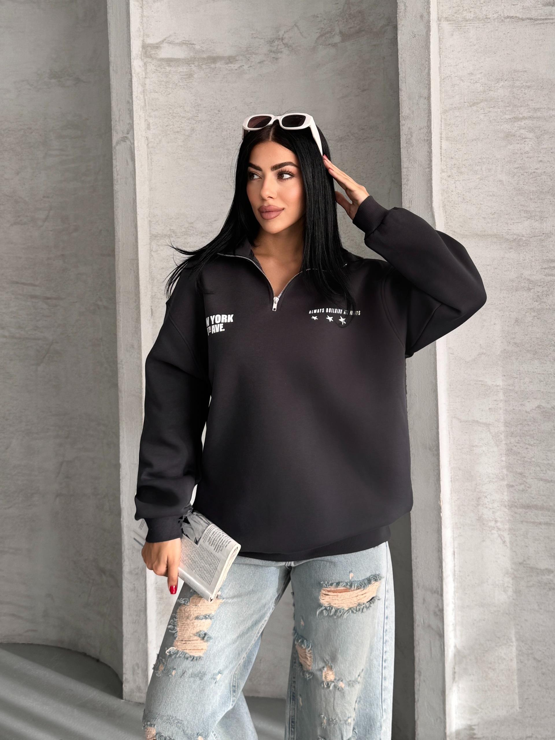 Şıklık ve konforu bir araya getiren New York 5th Ave. Oversize Sweatshirt, modern ve rahat kombinlerinizin vazgeçilmezi olacak. Yumuşak dokusu, fermuarlı yakası ve salaş kesimiyle hem günlük kullanımda hem de spor şıklığında tarzınıza dinamizm katar. Ön ve arka baskı detaylarıyla enerjik ve şehirli bir stil sunar.