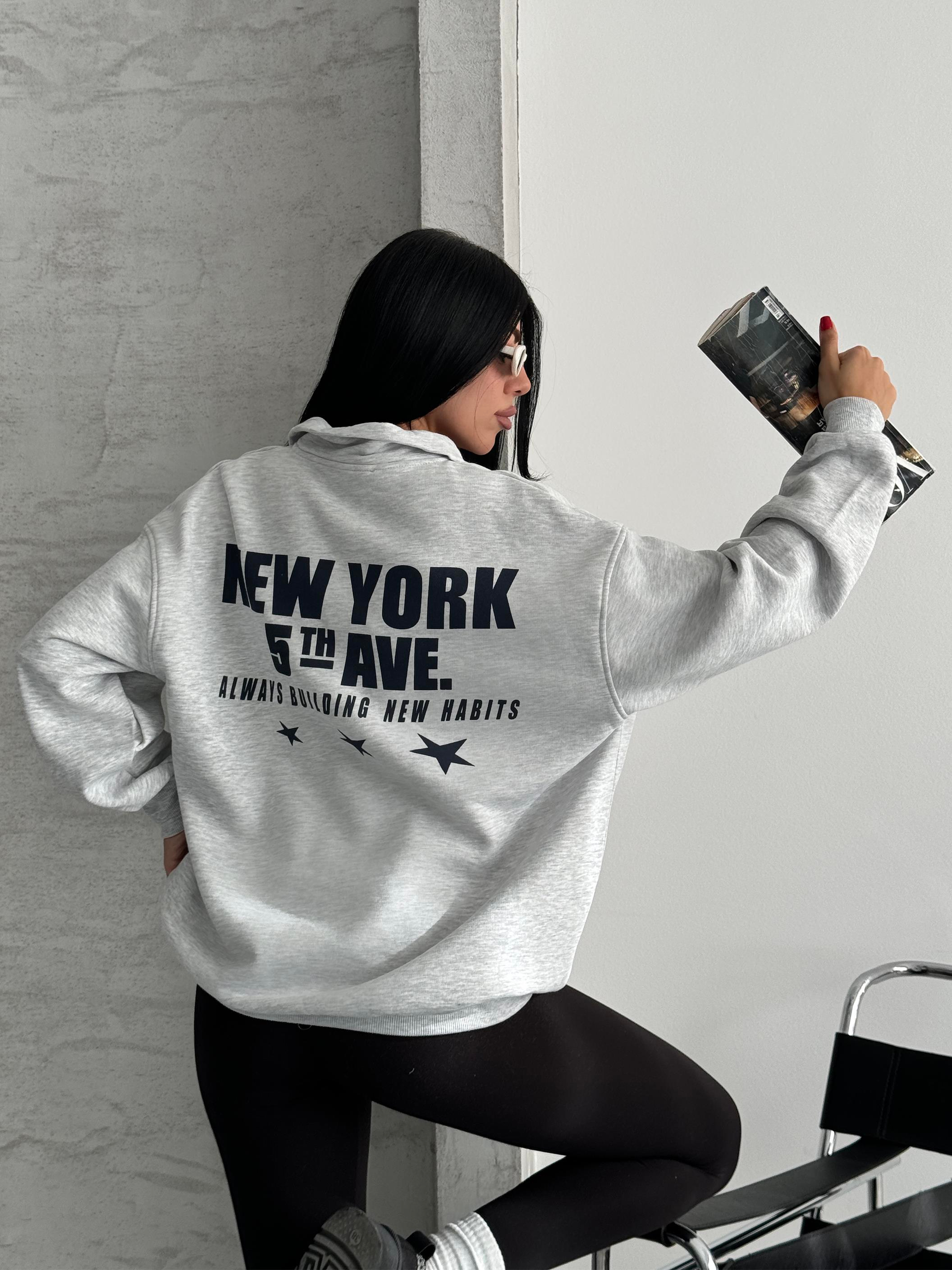 Ürün Detayları: Unisex kullanıma uygundur. Şardonlu, 3 iplik. oversize kesim. Ön ve arka baskılı (New York 5th Ave. yazılı). Pamuk & polyester karışımlı. Salaş/oversize fit