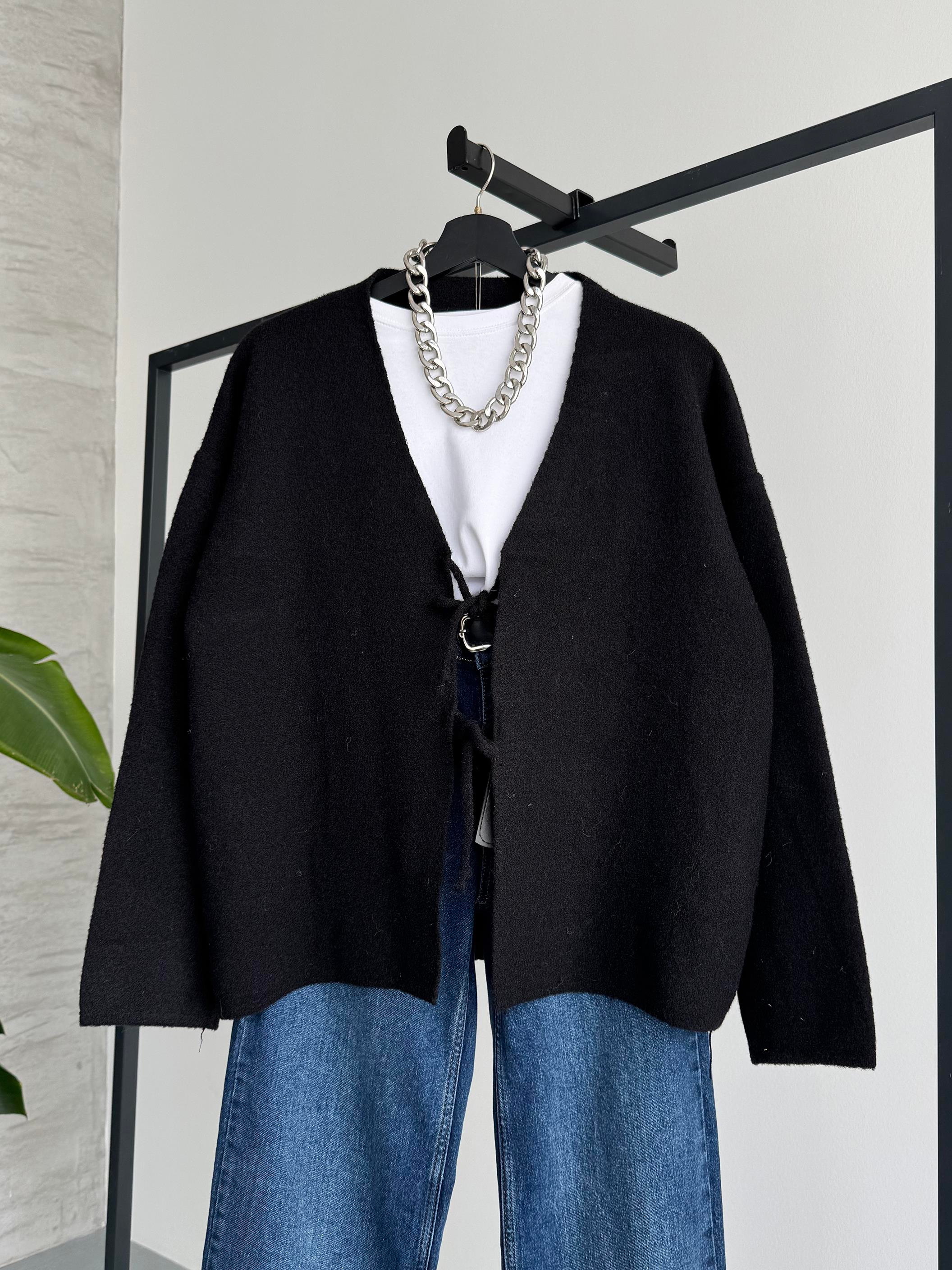 Bağlamalı Siyah Hırka