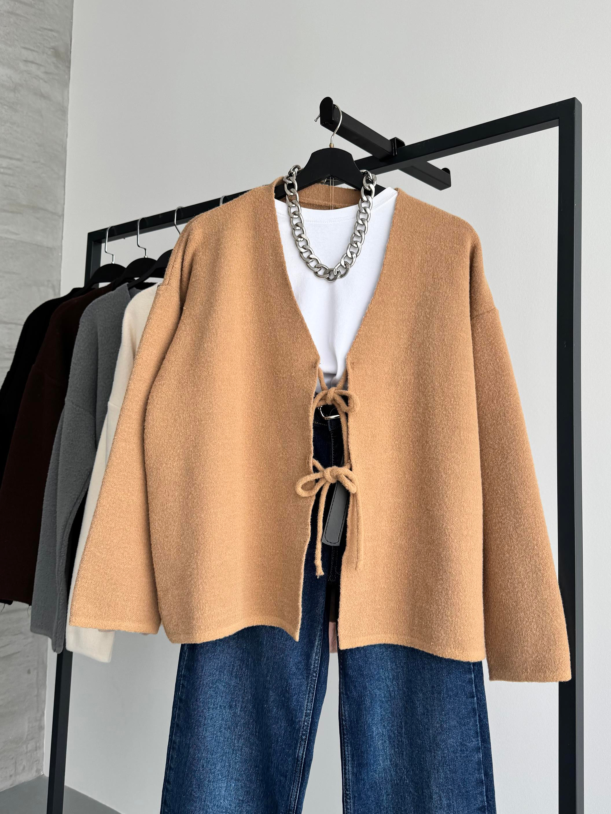 Ürün Detayları: Önden bağlamalı, oversize kesim. Yumuşak dokulu triko karışımlı kumaş. Hafif ve rahat kullanım. Düğmesiz