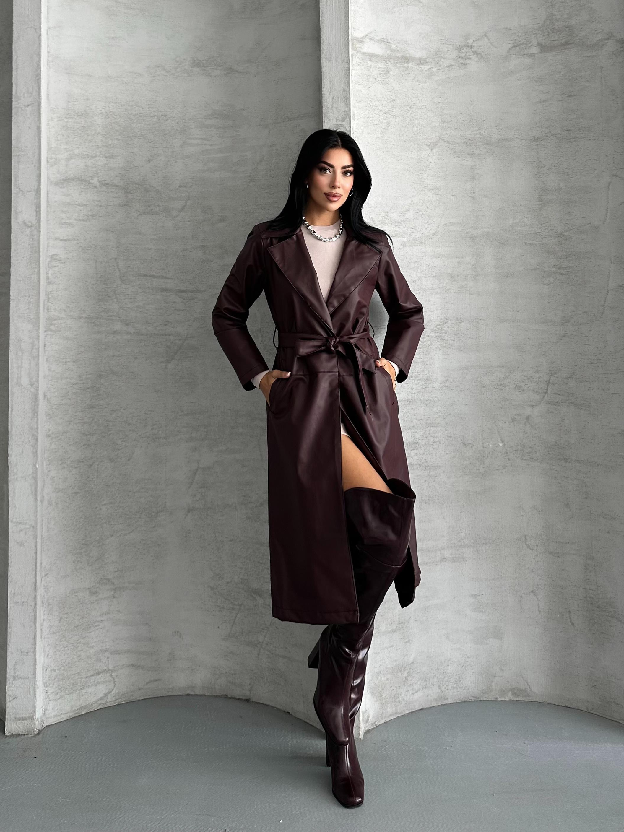 Tarzınızı güçlendiren Bordo deri görünümlü uzun trençkot, modern ve sofistike duruşuyla gardırobunuzun en iddialı parçalarından biri olacak. Bele oturan kuşak detayı sayesinde vücudu zarifçe kavrar, şık ve feminen bir siluet oluşturur. Günlük kombinlerde olduğu kadar özel davetlerde de rahatlıkla tercih edebileceğiniz bu trençkot, stilinizi bir üst seviyeye taşır.