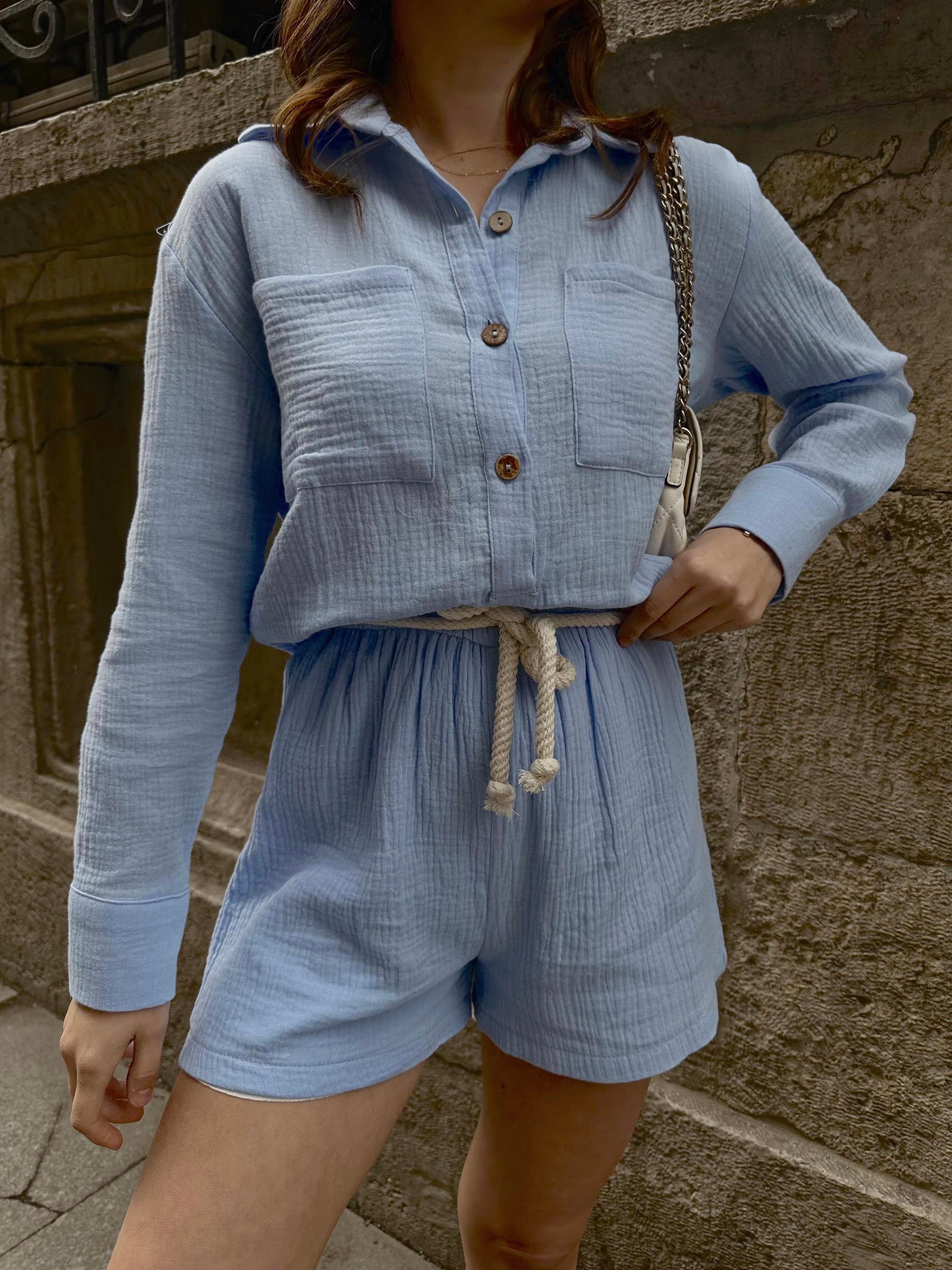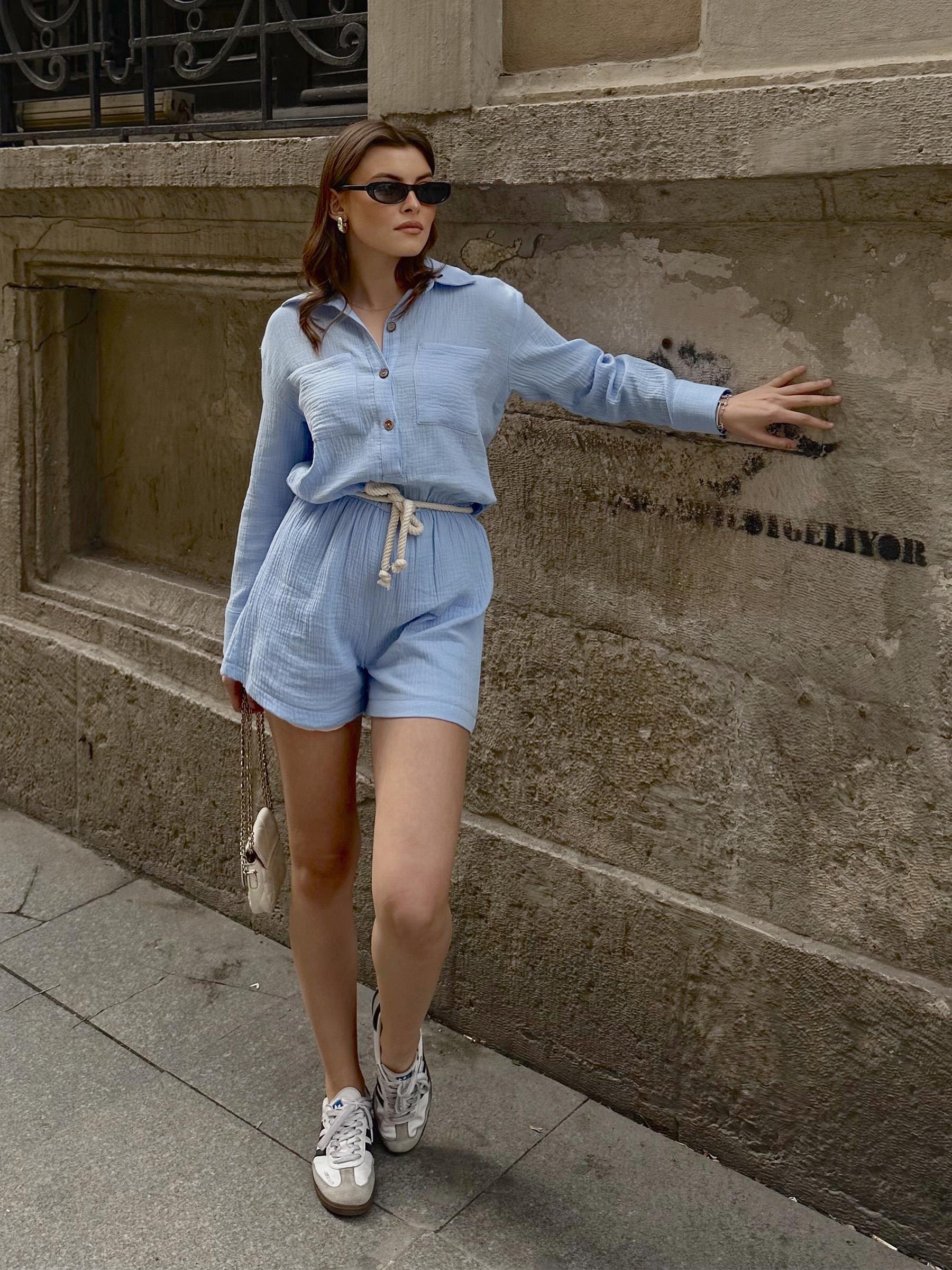 Bebe Mavisi Müslin Gömlek Takım ürünü, zarif tasarımı ve üstün kalitesiyle dikkat çeker. Günlük ve özel gün kombinlerinizde rahatlıkla tercih edebilirsiniz.