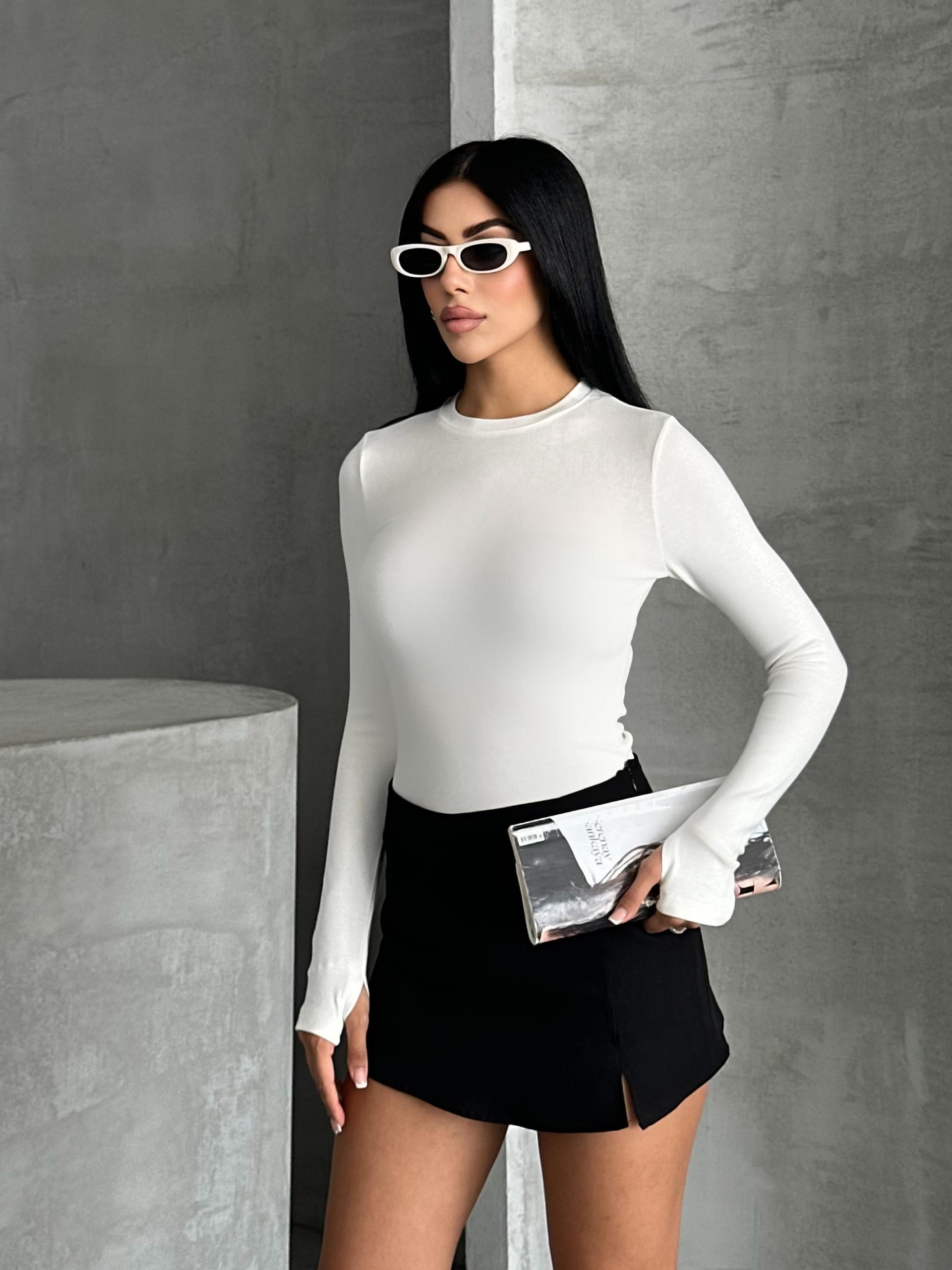 Bisiklet Yaka Parmak Geçmeli Beyaz Bluz
