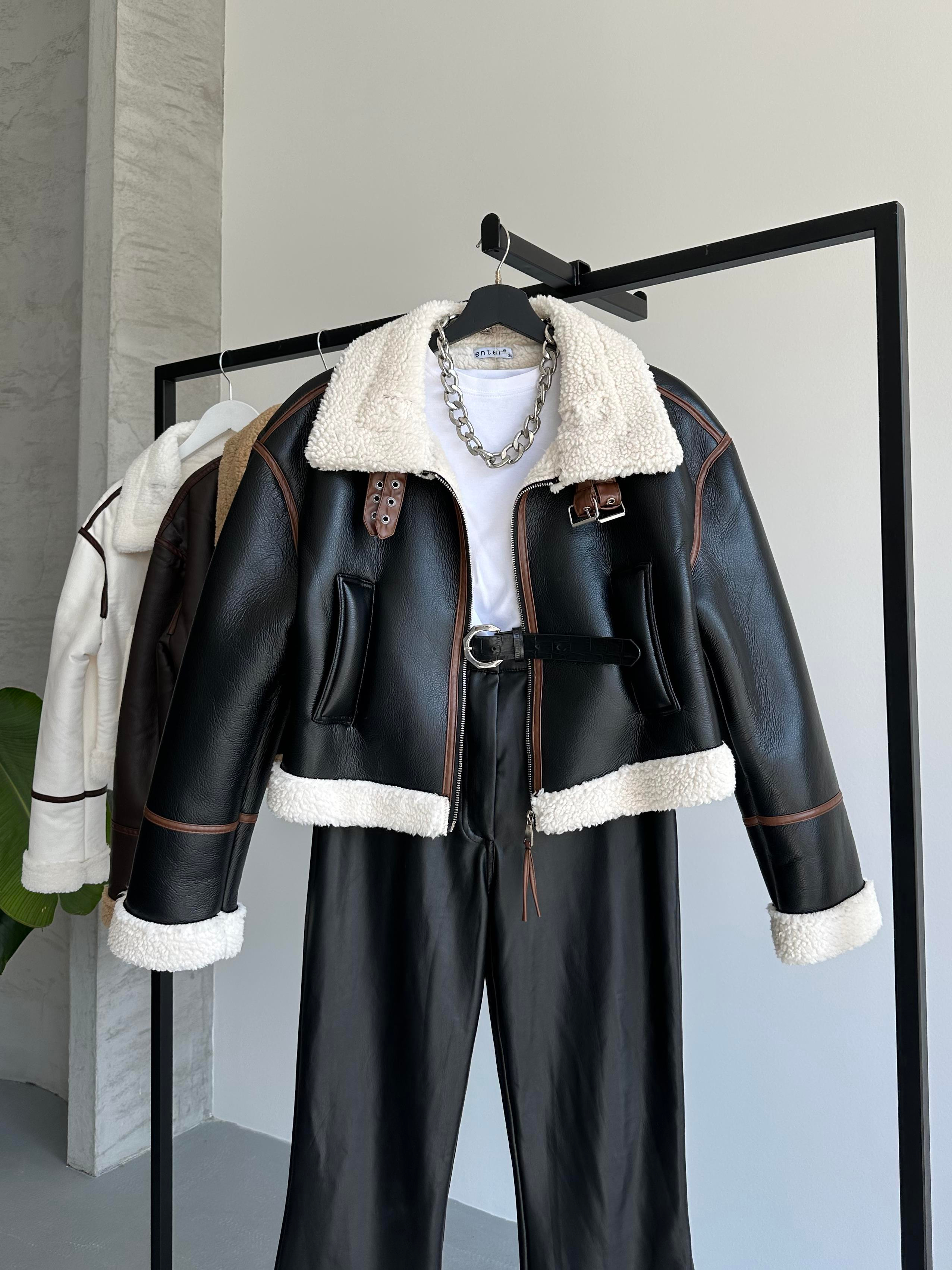 Kış aylarında stilinizden ödün vermeden sıcacık kalmak ister misiniz? Oversize kesimi ve iç kısmı yumuşak kürk astarıyla bu suni deri biker mont, hem şıklığı hem de konforu bir arada sunuyor.