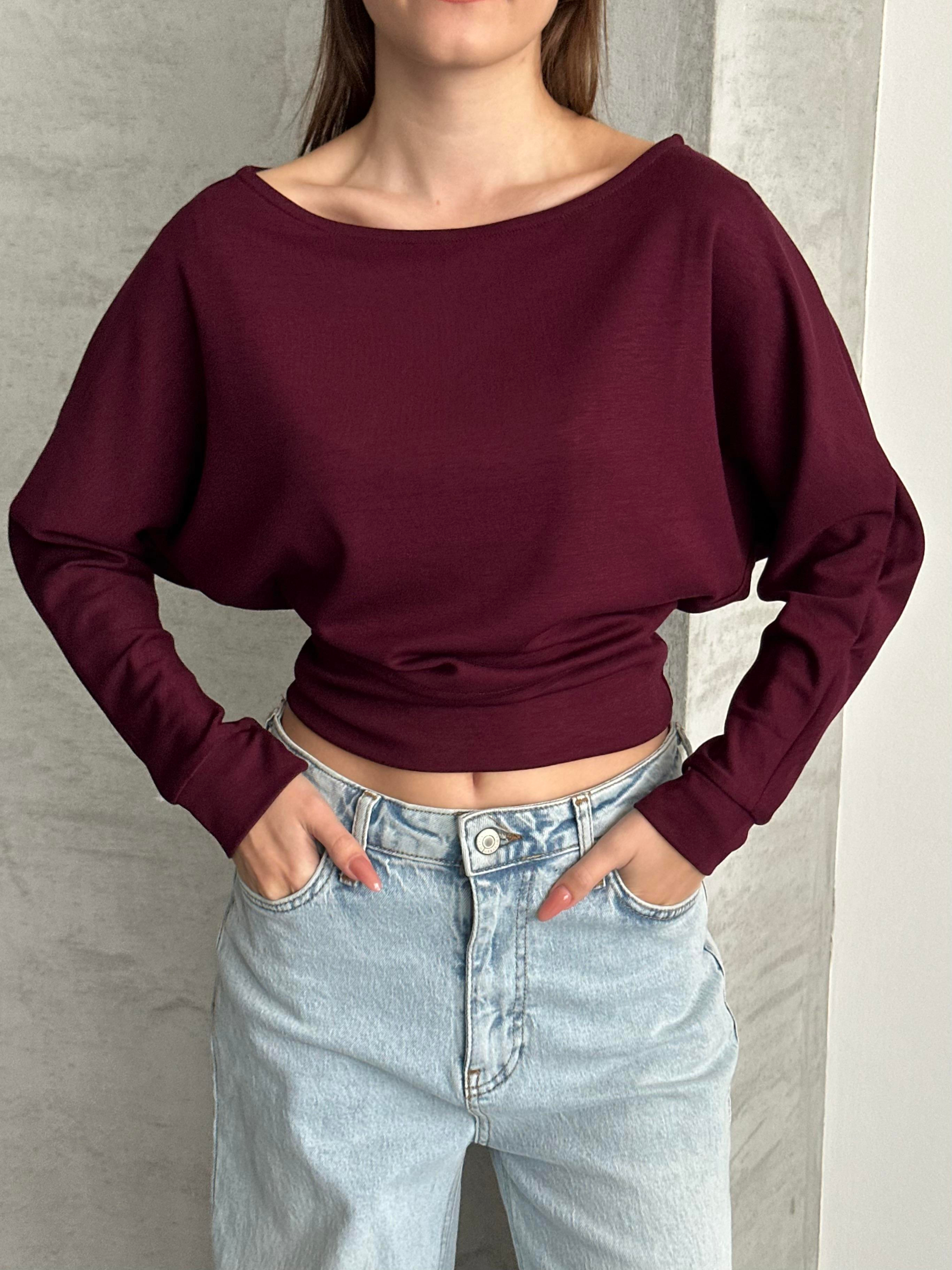 Ürün Detayları: Pamuk ve elastan karışımı esnek kumaş. Salaş üst, bel kısmı lastikli, uzun kollu. Geniş tekne yaka. Rahat kesim. Dört mevsim kullanıma uygundur