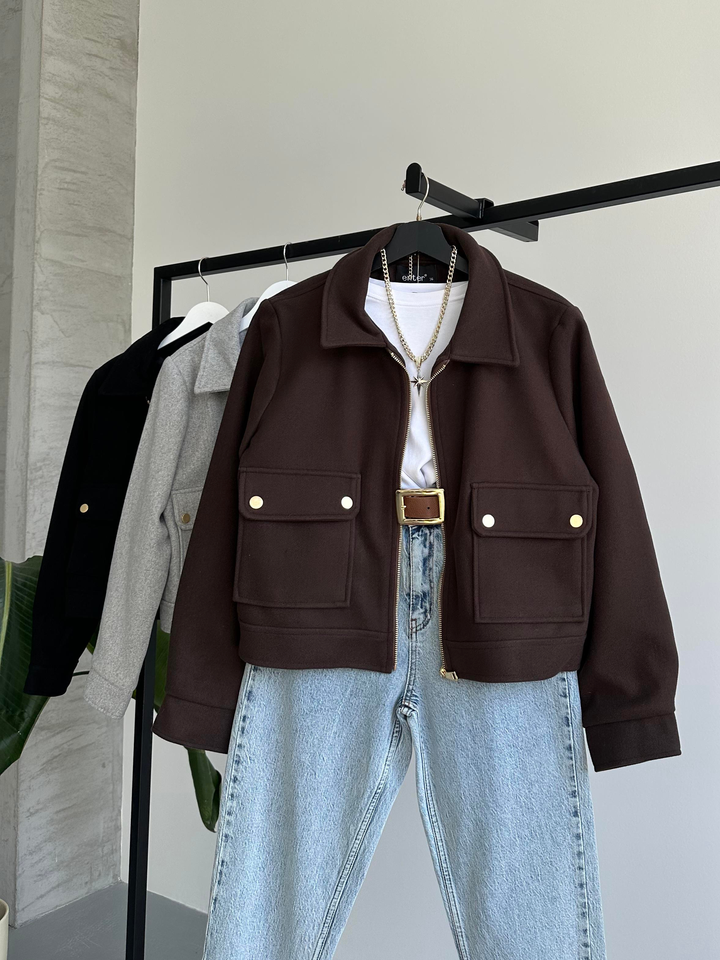 Şıklığı ve konforu bir araya getiren bu cepli kaşe kısa ceket, sezonun en trend parçalarından biri! Altın detaylı düğmeleri ve fermuar kapamasıyla zarif bir görünüm sunarken, oversize yapısıyla günlük kombinlerinize modern bir dokunuş katıyor.