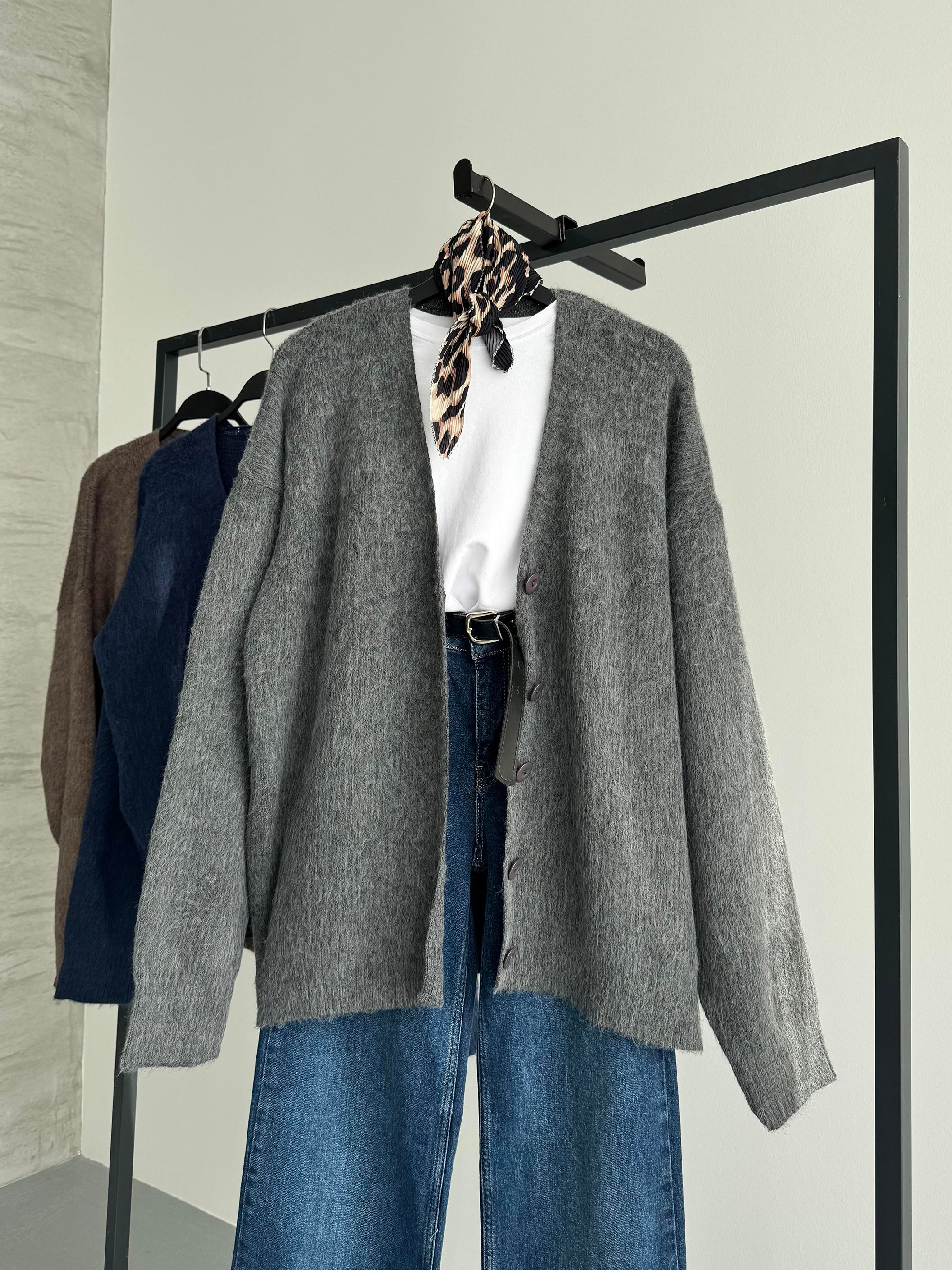 Soğuk havalarda şıklığınızı tamamlayacak, rahat ve sıcak tutan oversize hırka modeli. Yumuşak dokusu sayesinde gün boyu konfor sunar.