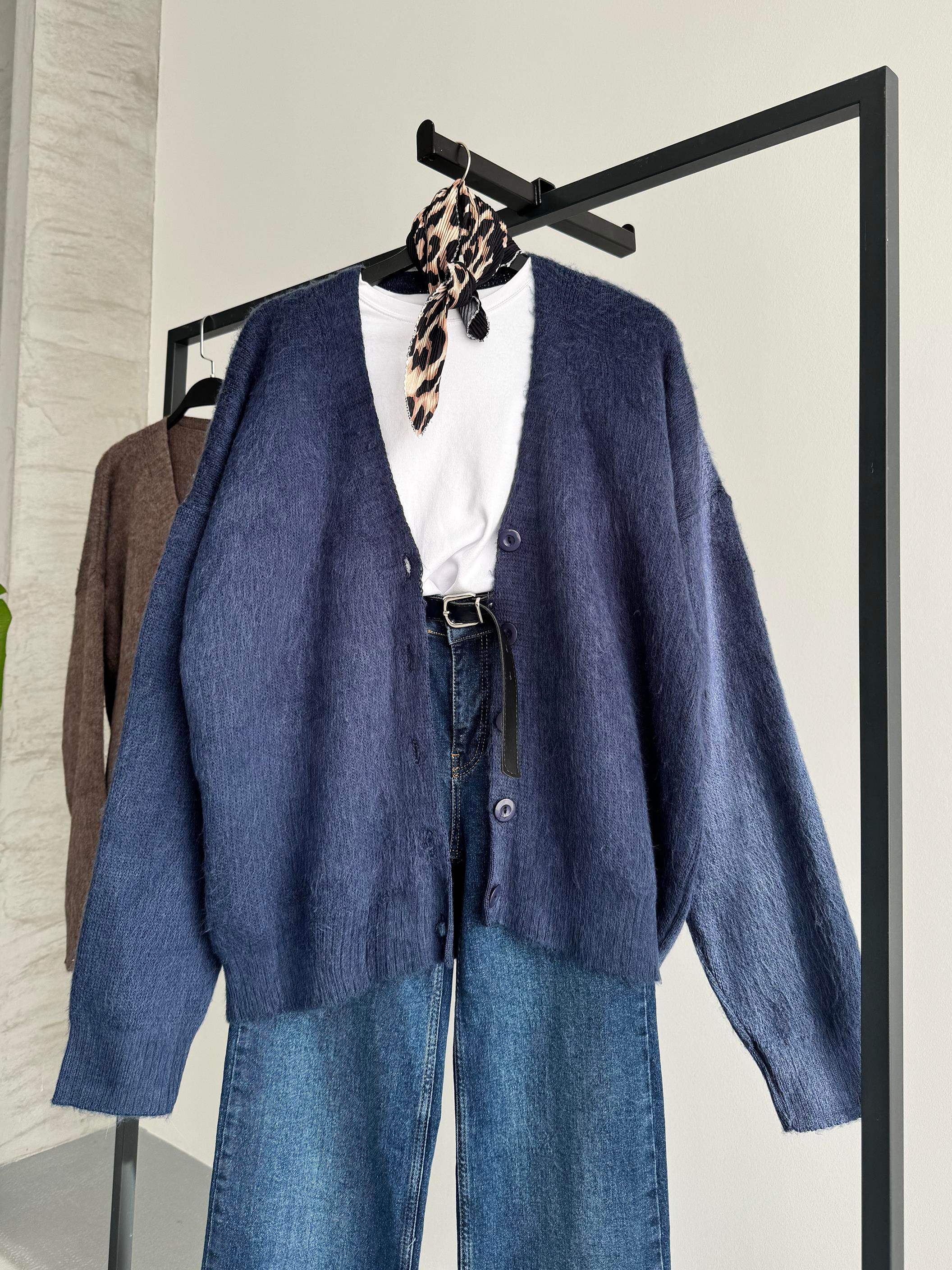 Düz Lacivert Triko Hırka