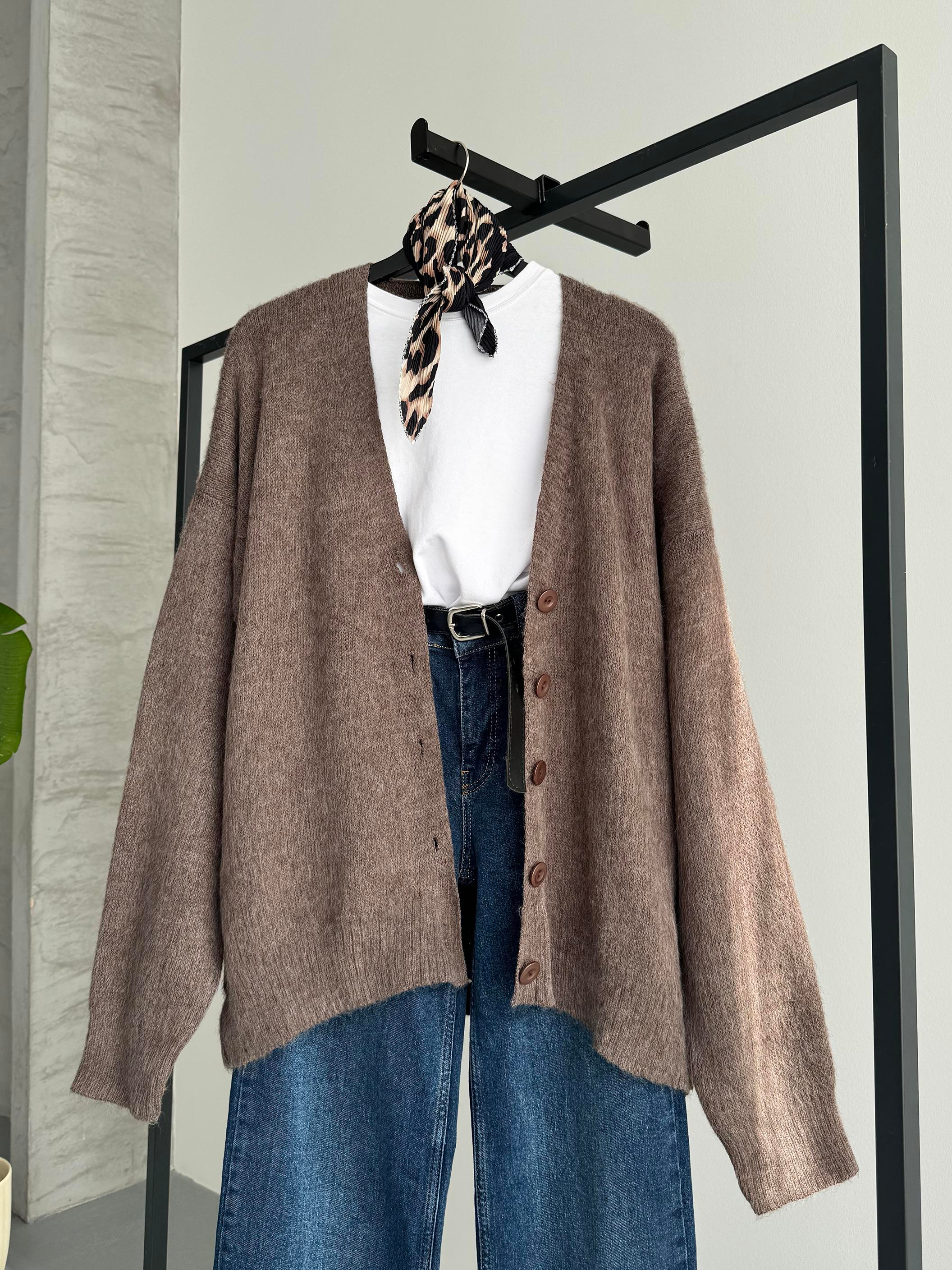 Soğuk havalarda şıklığınızı tamamlayacak, rahat ve sıcak tutan oversize hırka modeli. Yumuşak dokusu sayesinde gün boyu konfor sunar.