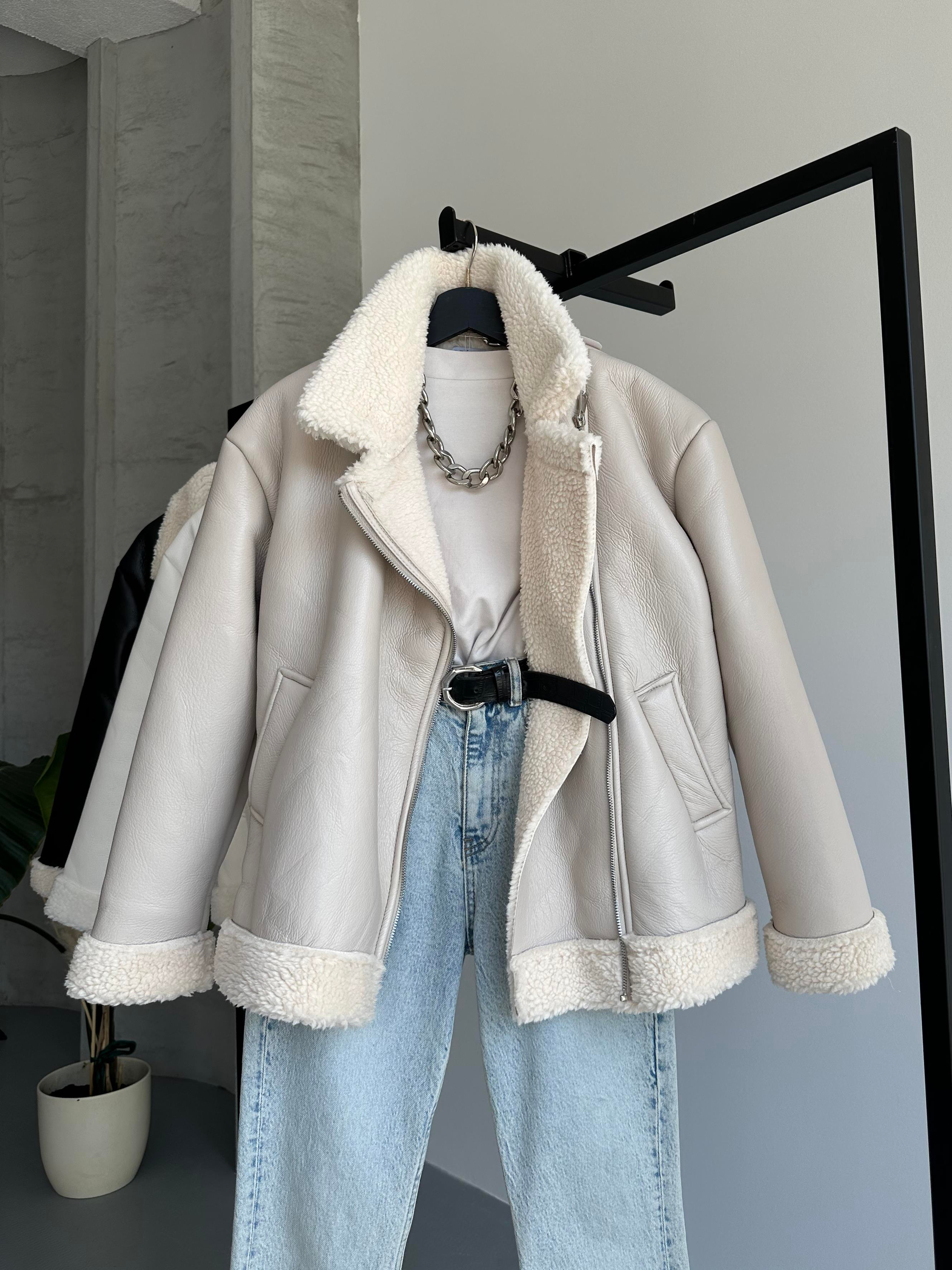 Soğuk havalarda hem şıklığı hem de sıcaklığı bir arada sunan bu siyah deri görünümlü kürklü ceket, tarzınızı öne çıkarıyor.