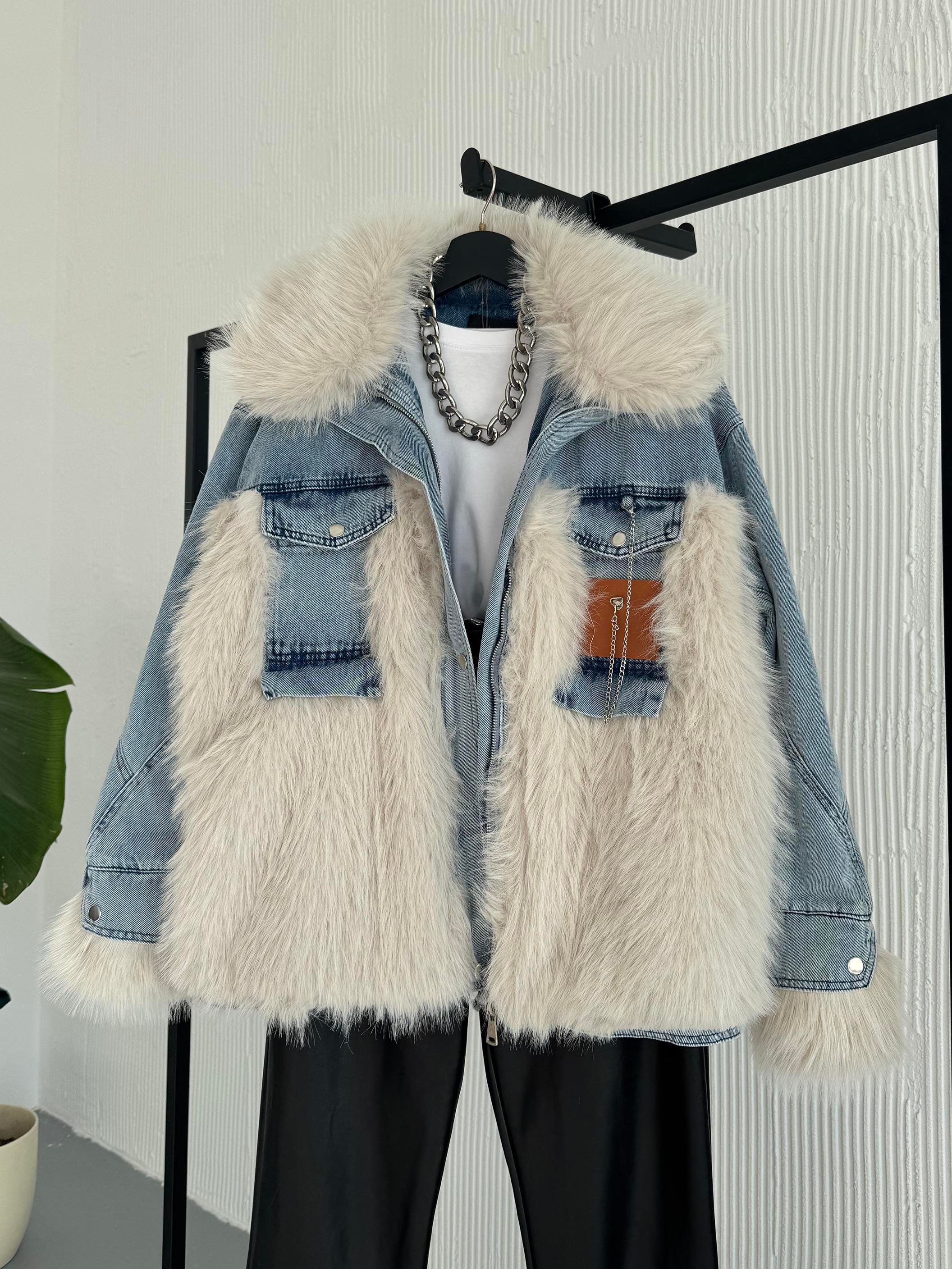 Ürün Detayları : Denim + yumuşak peluş kürk karışımı. Önden fermuarlı ve çıtçıtlı kapanış. İki adet kapaklı göğüs cebi. İçi astarsız. Rahat, salaş kalıp