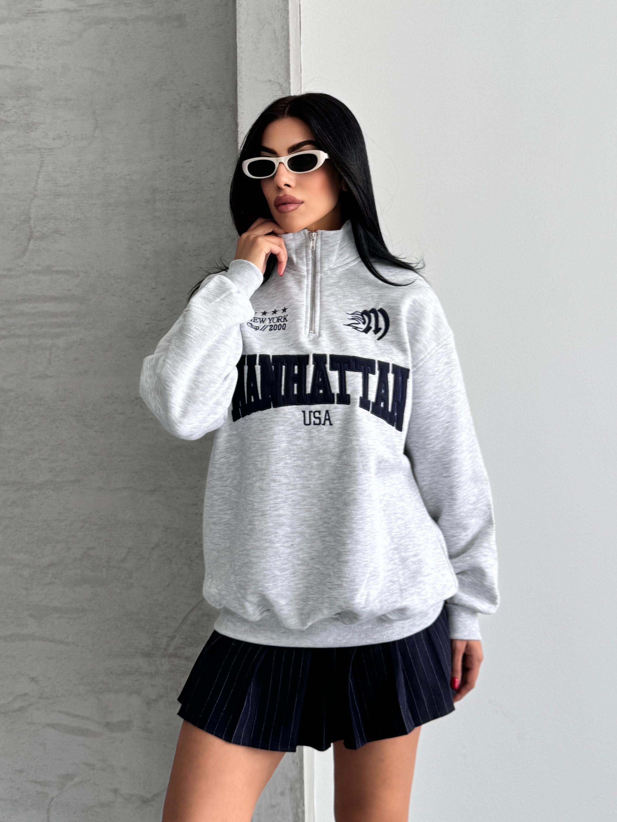 Spor şıklığın en rahat hali! Ön kısmındaki büyük “Manhattan USA” baskısıyla dikkat çeken bu sweatshirt, fermuarlı yaka detayı ve oversize kalıbıyla modern bir görünüm sunuyor. Yumuşak kumaşı sayesinde günlük kombinlerinizde hem tarzınızı hem de konforunuzu ön plana çıkarır.