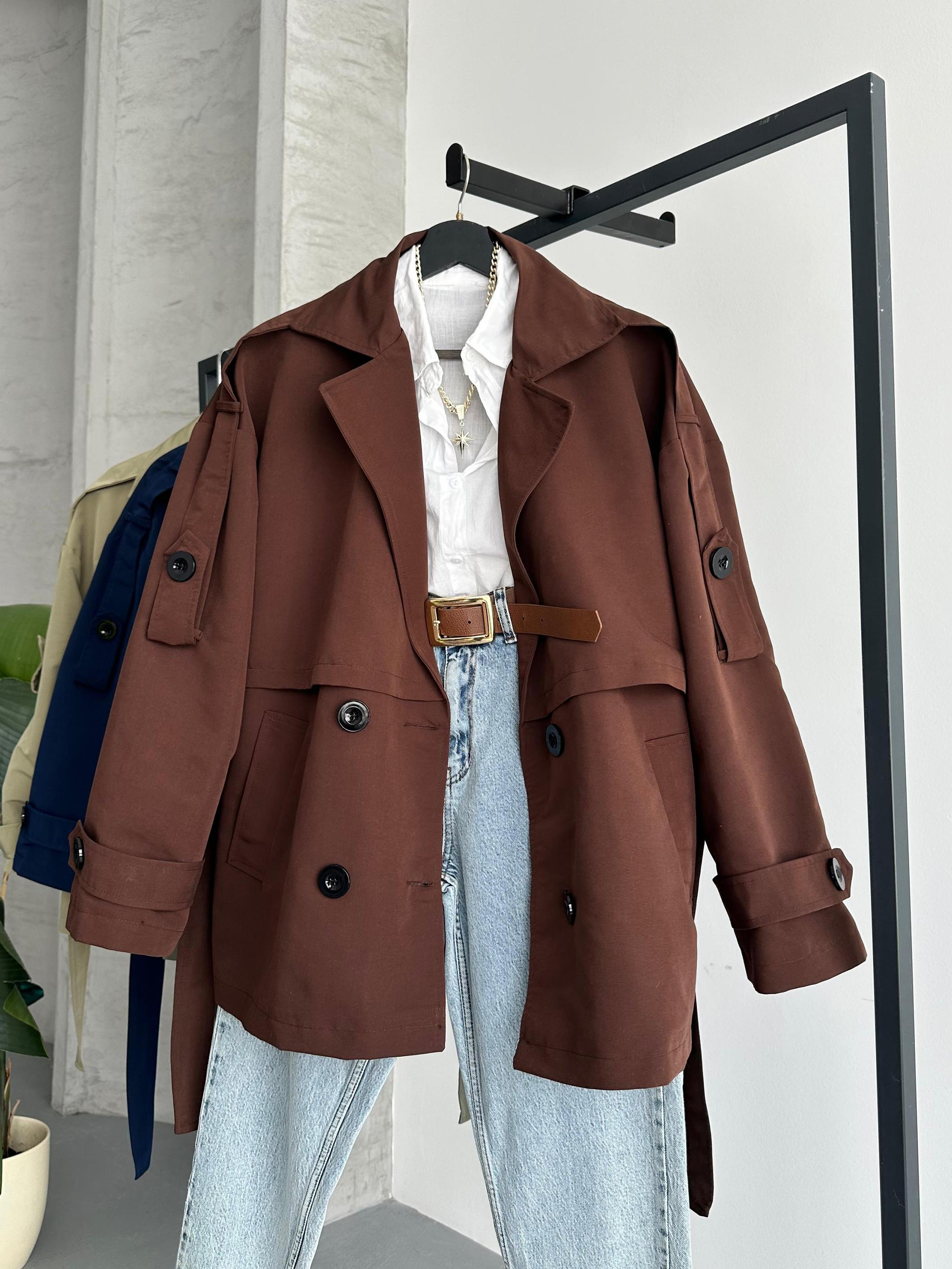 Perry Düğmeli Kısa Kahverengi Trençkot