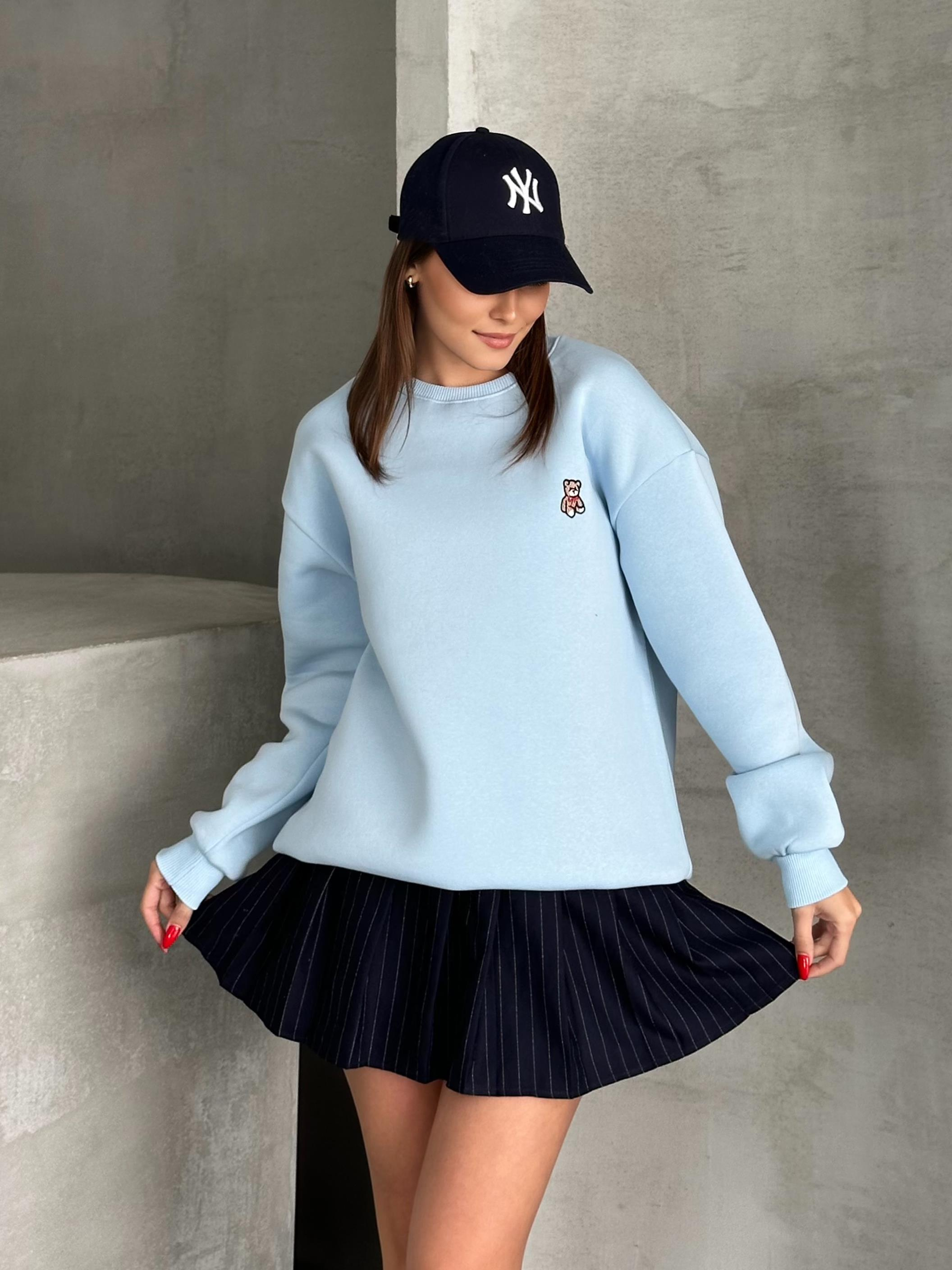 Yumuşacık kumaşı ve minimal ayıcık nakış detayıyla kombinlerin vazgeçilmezi olacak bu oversize sweatshirt, hem rahatlığı hem de şıklığı bir arada sunuyor.