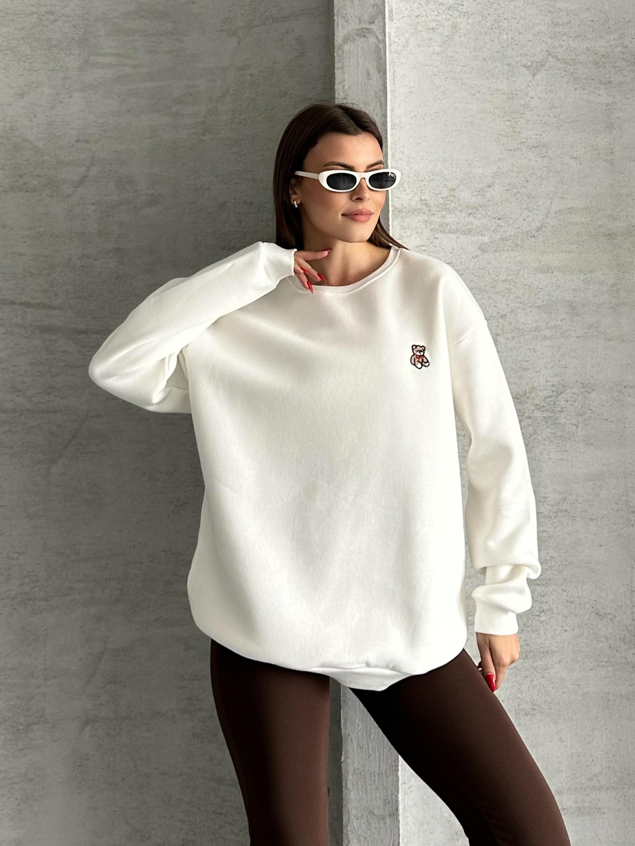 Unisex Bear Beyaz Sweatshirt