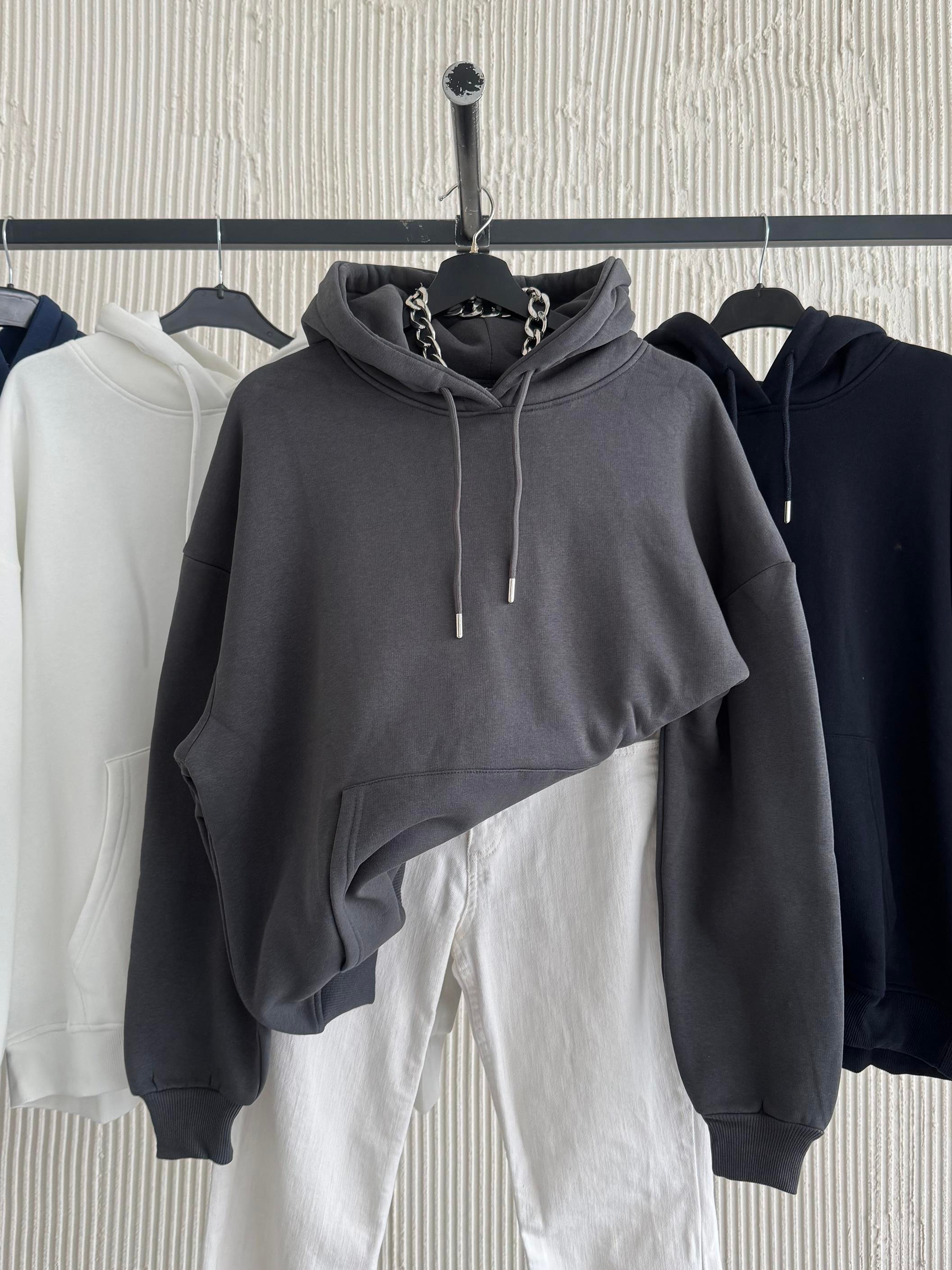 Günlük stilin vazgeçilmez parçası olan Antrasit oversize sweatshirt, sade ve şık tasarımıyla dikkat çekiyor. Kalın kumaşı sayesinde hem sıcak tutar hem de konfor sunar. Kanguru cebi, ribana manşetler ve ayarlanabilir kapüşon detayıyla hem işlevsel hem de modern.