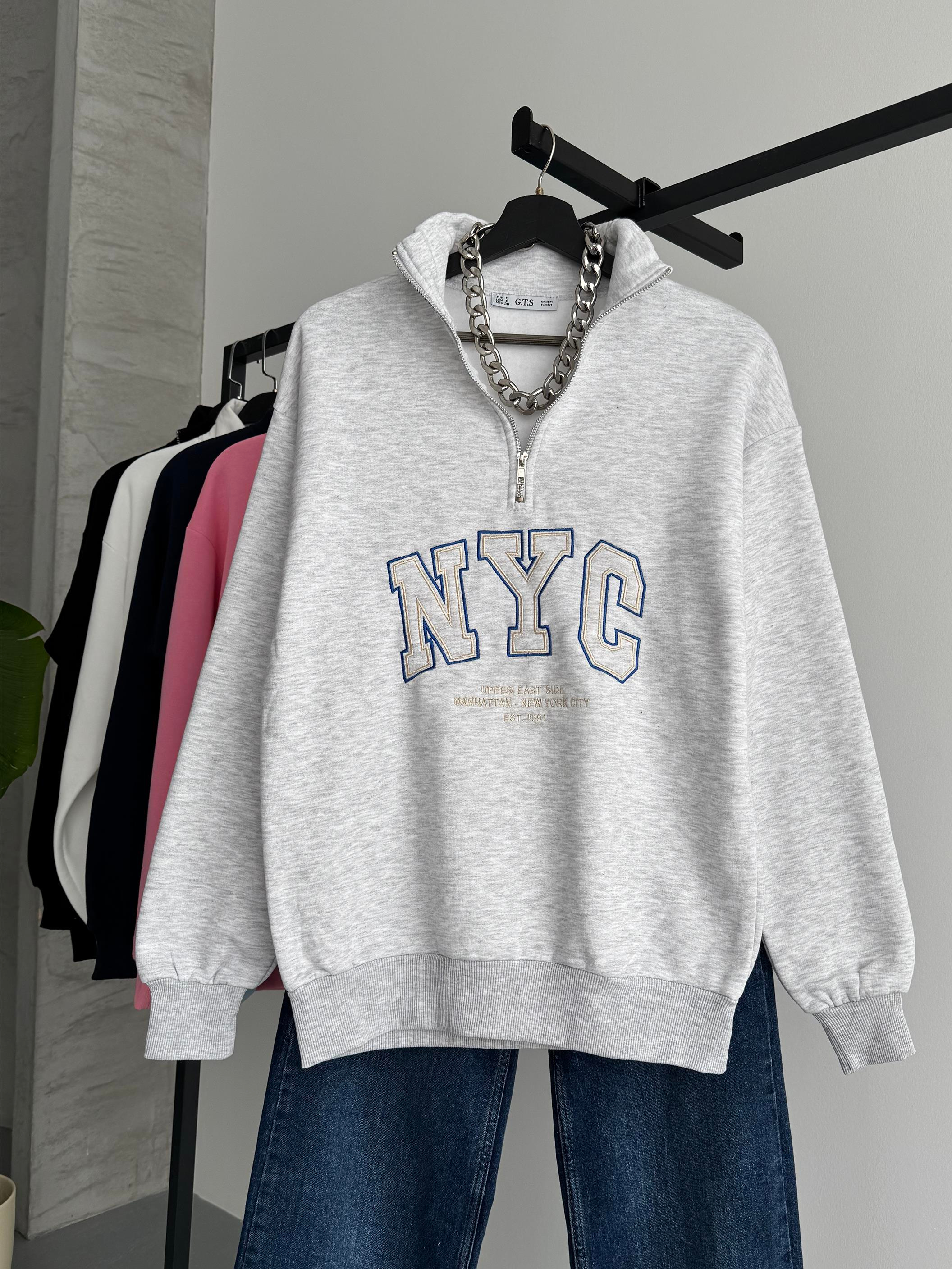Şehir stiline ilham veren bu NYC yazılı Melanj yarım fermuarlı sweatshirt, hem şıklığı hem de konforu bir arada sunar. Oversize kalıbı sayesinde gün boyu rahat bir kullanım sağlarken, modern tasarımıyla sokak stilinize trend bir dokunuş katar. Manhattan ruhunu gardırobuna taşımak isteyenler için ideal bir parça!