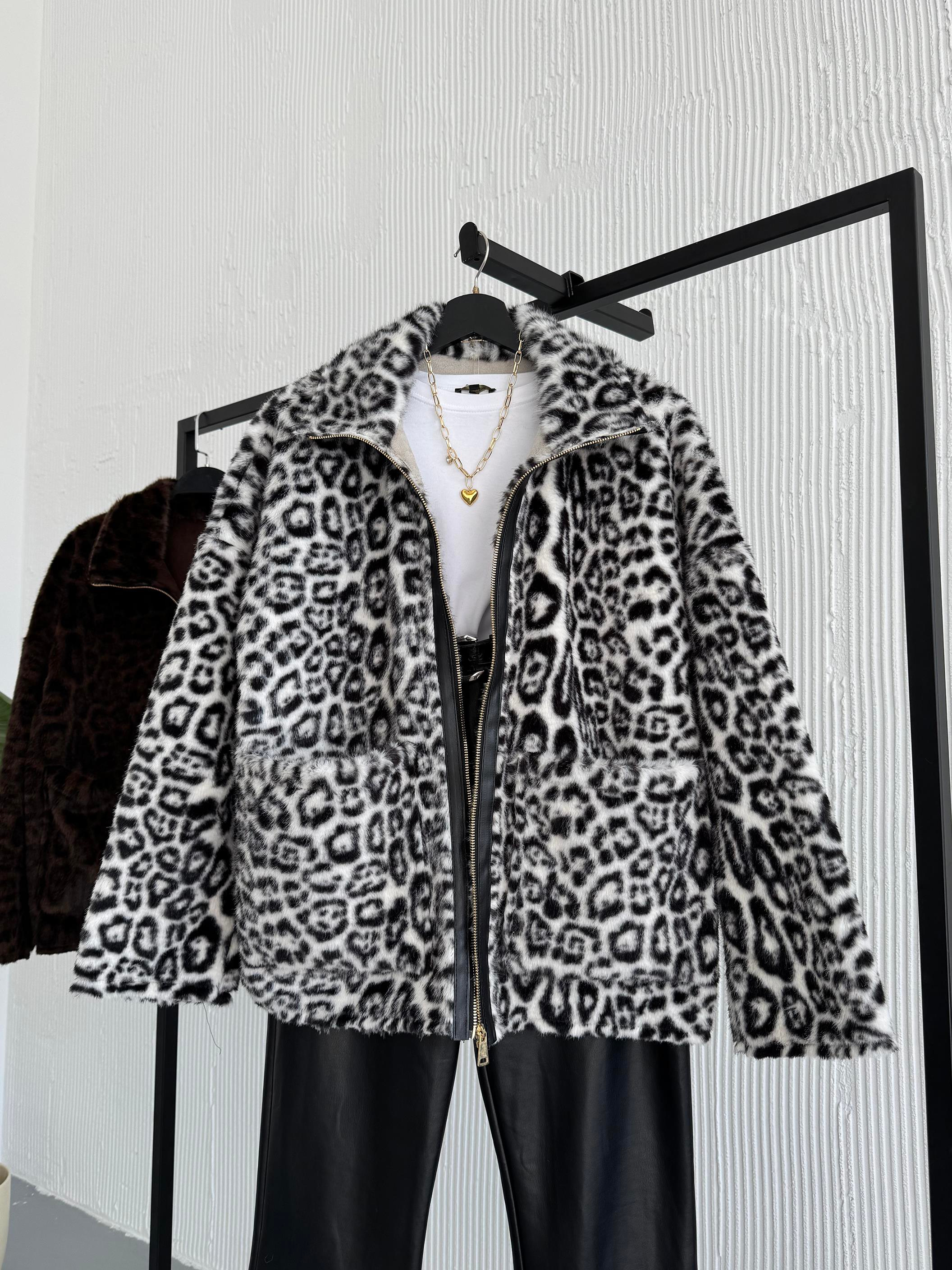 Bu Zebra desenli peluş mont, sezonun en iddialı parçalarından biri. Günlük kombinlerde jean veya deri pantolonlarla kolayca uyum sağlar. Suni kürk dokusu ile hem konforlu hem de şık bir duruş sunar. Fermuarlı yapısı pratik kullanım sağlarken, yumuşak iç astarı soğuk günlerde sıcaklık garantiler.